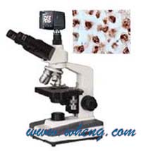 数码型生物显微镜是将精锐的光学显微镜技术、先进的光电转换技术、尖端的数码成像技术完美地结合在一起而开发研制成功的一项高科技产品。既可人工观察显微图像,又可以在数码相机上很方便地适时观察显微图像,并可随时记录观察图片,从而对观察图像进行分析,处理等,还可以保存或冲印出高像素图像照片。